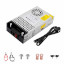 The PWM module then requires a supply voltage between DC 5V and 30V. For this, we use a 24V 18W power supply. The power supply receives its supply voltage directly from the power cable L (brown) and N (blue). The outputs RD+ and BK- are connected to the PWM module's DC+ and DC-.